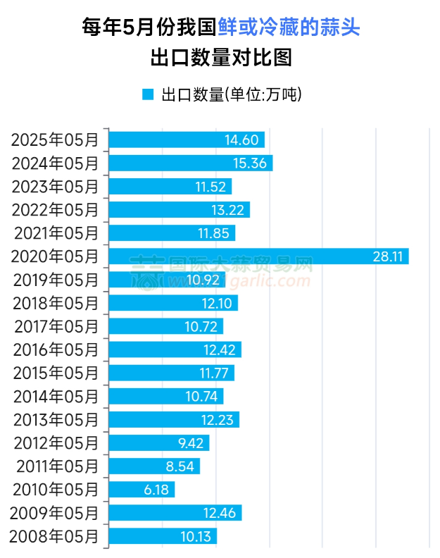 5月份大蒜出口量,同環(huán)比均大幅下降!