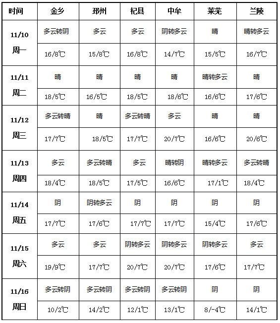 本周金鄉(xiāng)、邳州、杞縣、中牟、萊蕪、蘭陵等產(chǎn)區(qū),將以多云或晴好天氣為主,周內(nèi)無明顯降水。前期產(chǎn)區(qū)氣溫相對溫和,后期氣溫出現(xiàn)大幅跳水。本周最高氣溫出現(xiàn)在 11 月 15 日,金鄉(xiāng)、杞縣、中牟達 19-20℃;最低氣溫出現(xiàn)在 11 月 16 日,萊蕪低至 - 4℃,其他產(chǎn)區(qū)也降至 1-2℃,晝夜溫差較大。